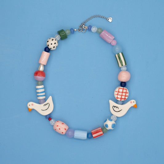 Collana con perline in ceramica e paperelle