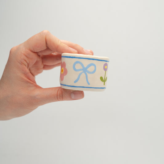 Tazzina con disegni e bordo blu
