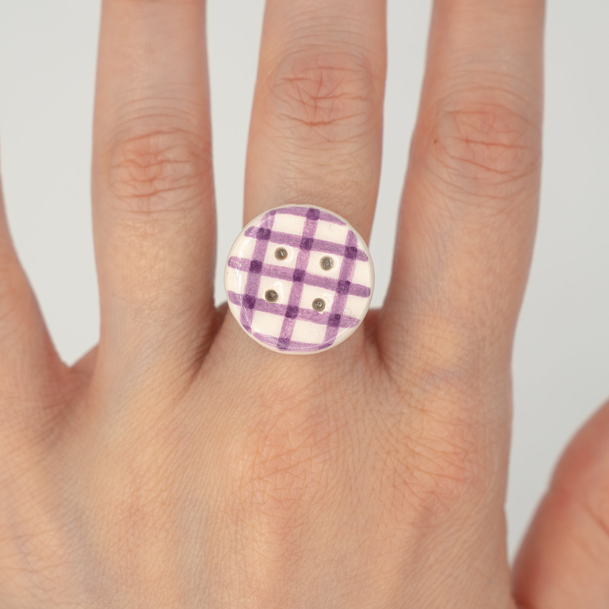 Anello regolabile con base in acciaio inossidabile e piastrina in ceramica realizzata a mano.