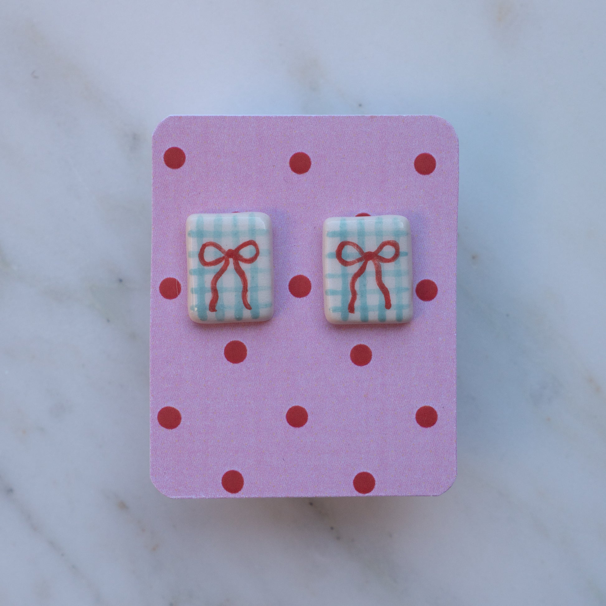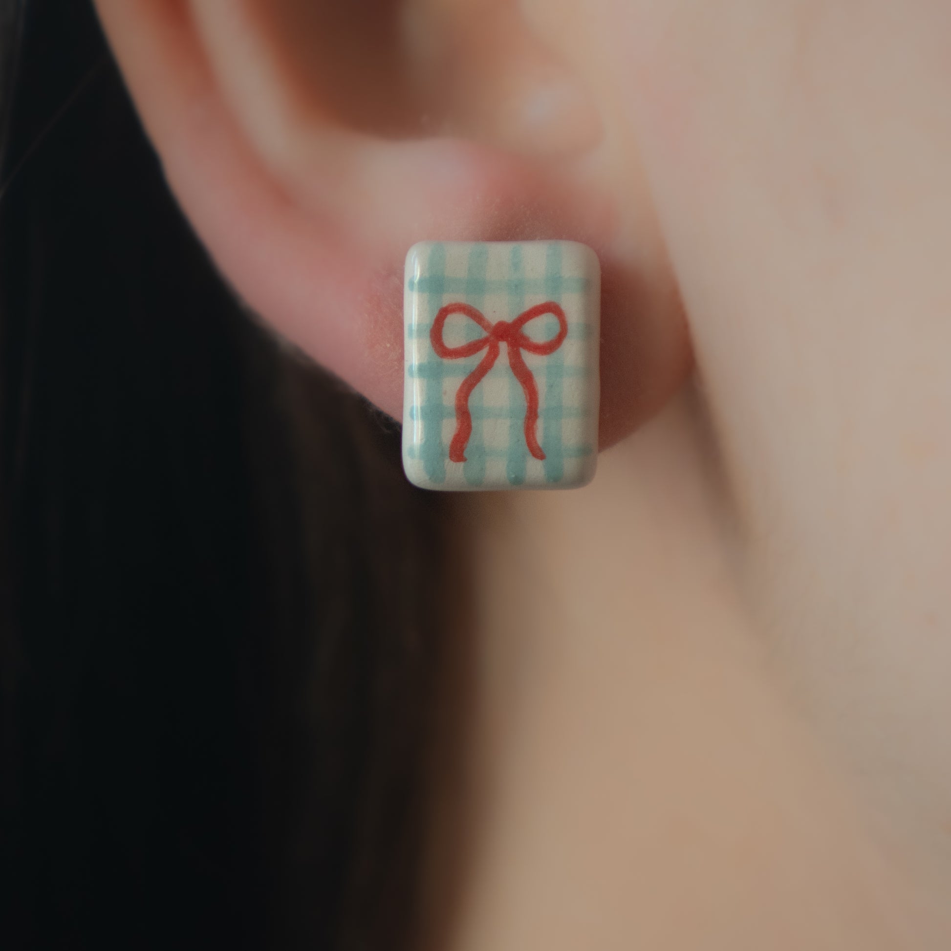 Coppia di orecchini a lobo realizzati a mano in ceramica.