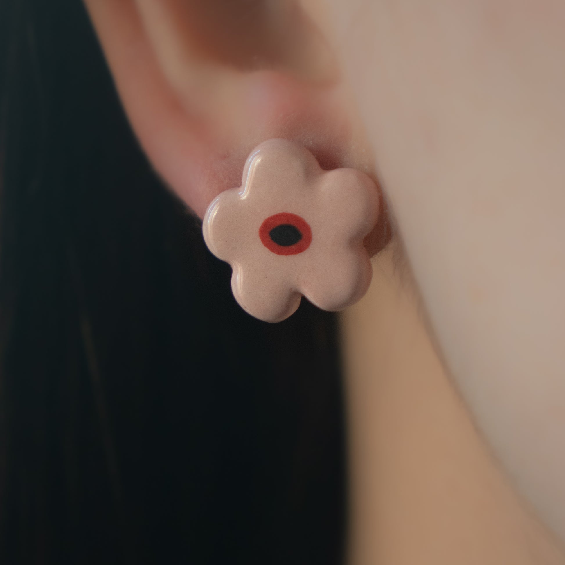 Coppia di orecchini a lobo realizzati a mano in ceramica.