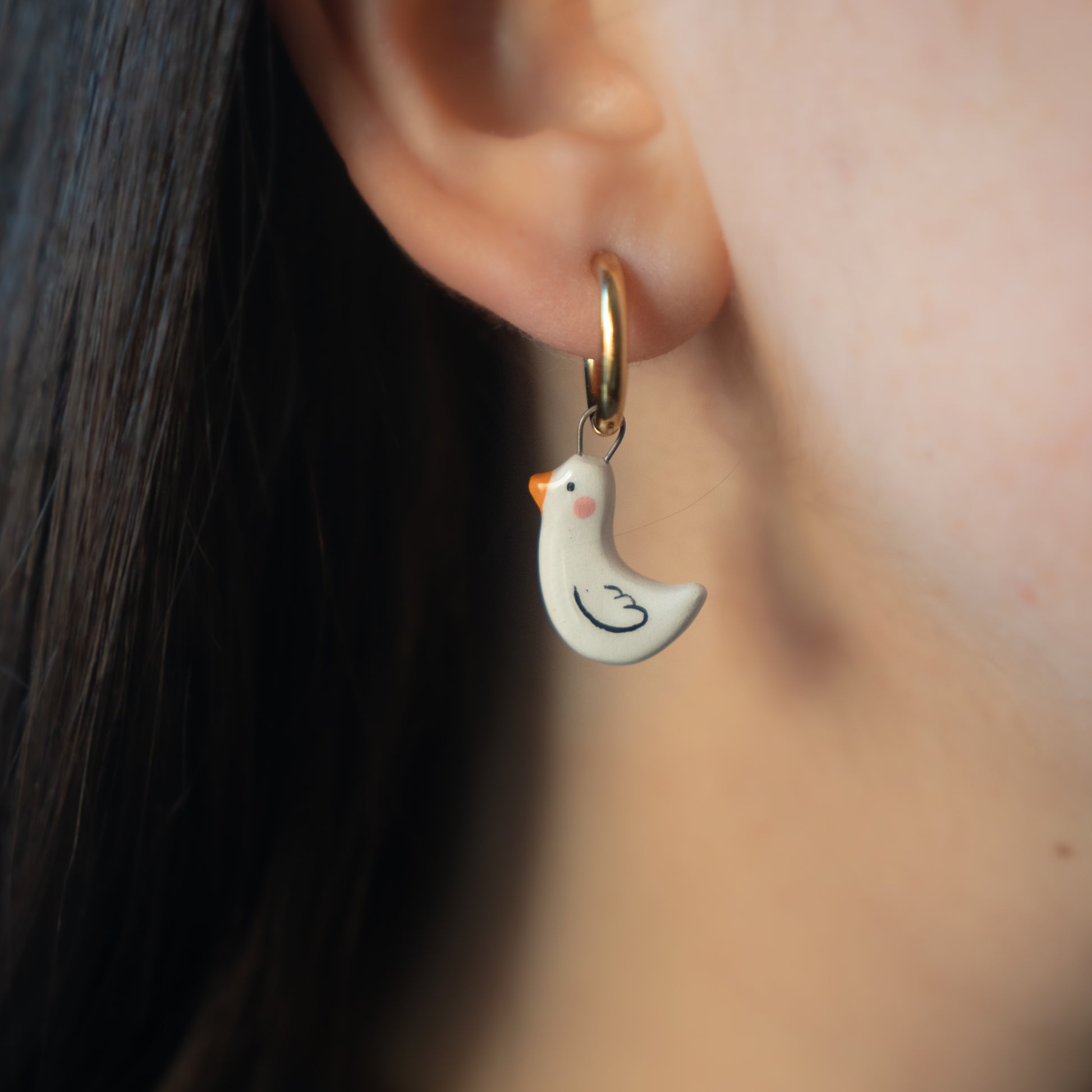 Orecchini ad anella con ciondoli in ceramica realizzati a mano. Diametro anelle: 15 mm.