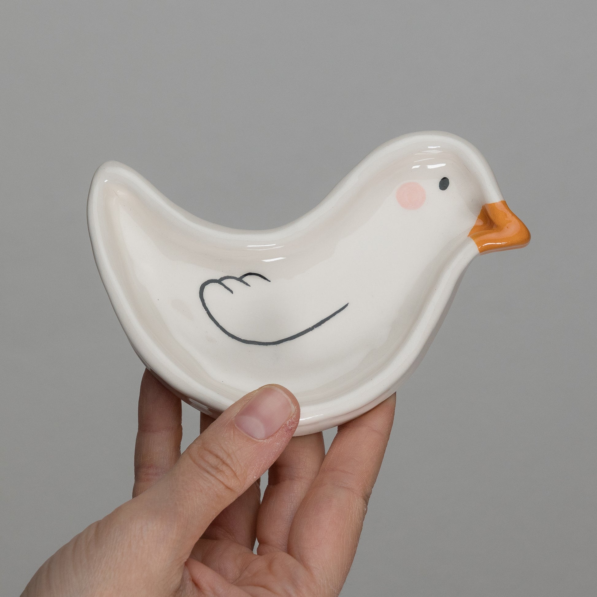 Piattino portagioie a forma di ochetta.